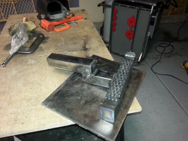 Constructed out of 2" square tubing (1/8" wall) and 2" angle (1/4" wall). I used 2"x1/8" plate to cap the ends of the tubing.