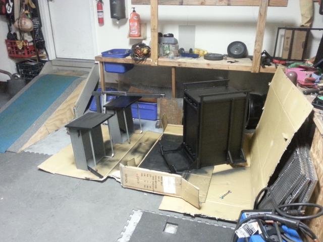 I disassembled the various pars of the cart that I could. Originally, the file cabinet was to be removable, but apparently I got some of the welds hot enough to get the cabinet stuck in there. I didn't really want to destroy it trying to get it out since there would rarely be a need to do so. Because of that, It simplified the paint scheme. Originally, it was going to be a black frame with silver file cabinet, then Sharpie marker some murals on the silver in black. Now the whole thing is going to be black and I'm going to hand draw some murals in white, silver, and gold sharpie marker. I've got an artistic mind, but lack the skill to transfer it generally. I'm hoping the final product comes out nicely though. At a minimum, I think it will be unique. I think I might reserve some space on the cabinet to have visitors to the garage sign it and sketch on it in the hopes that over time it becomes a journal of time spent with friends. We'll see how that goes as I don't want people to feel obligated to do so.