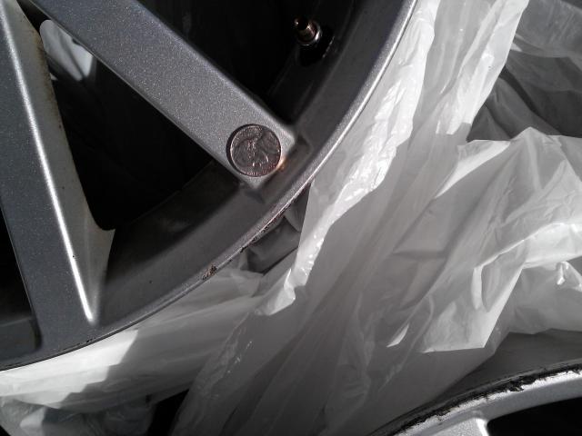 The rash is somewhat long on one of the rims, but none of them are deep. A dark coat will most likely cover the rash up, unless you run your finger across the edge. If one wants to spend the money, a rim shop can easily patch that up.