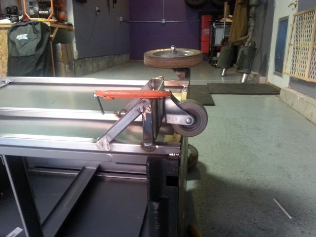 A couple views of the welding court in its rolling state. At this point, I still need to add the actual shelf the welder will rest on, some plate steel to hang angle grinders from, some tabs to wrap cords, and finally the push handle. I also plan to add a 110v outlet strip to power hand tools and a 220V outloet with a long extension chord so that the welder cord is never stretched. The 220 extension chord will likely be 50 ft. I'll make it out of 4 strand 2/0 wire or thereabouts. I plan to use 4 strand in case I can figure out away to tie it to a 110 v outlet when 220 isn't available (like now).