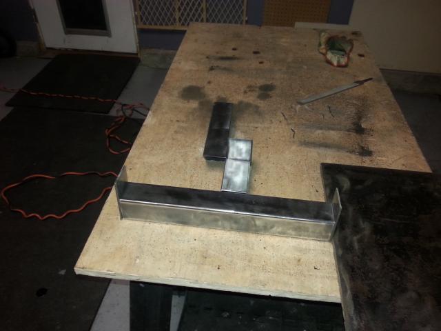 Final product before paint. It looks like two pieces of square tubing were simply stacked. They were not. A parallelogram was cut to step the lower tube an additional inch. Getting the 3 pieces forming the length of the piece straight was a pretty difficult thing to accomplish for me. The cuts I made with my chop saw were off some from a correct 45, so there was a lot of variance in the gap that was welded. The more weld/heat, you put in an area, the more shrinkage that occurs. I managed to win the battle somehow.