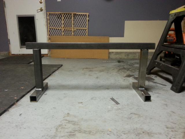 Constructed out of 2" square tubing (1/8" wall) and 2" angle (1/4" wall). I used 2"x1/8" plate to cap the ends of the tubing.
