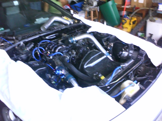 jus gotta connect everything and route the intercooler piping. ill be finishing the rest over the weekend. other than that its seriously almost done!!