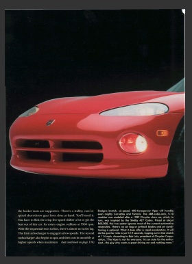 "When Playboy magazine first reviewed the FD RX-7 in 1993, they tested it in the same issue as the [then] new Dodge Viper. In that issue, Playboy declared the RX-7 to be the better of the two cars. It went on to win Playboy's Car of the Year for 1993."