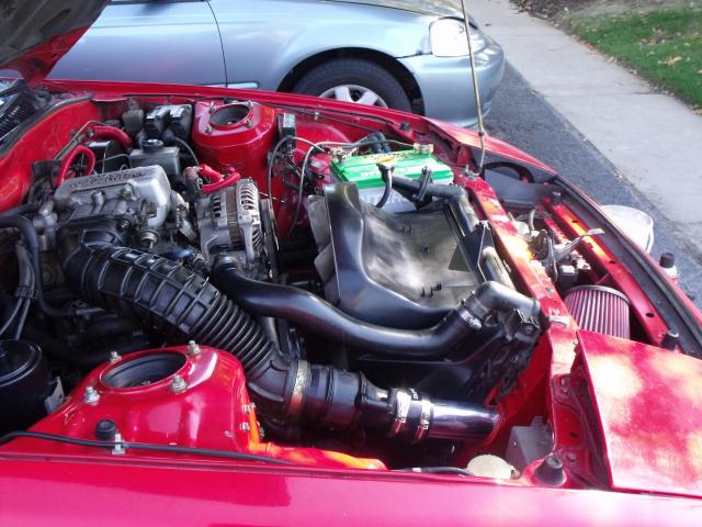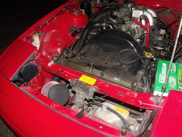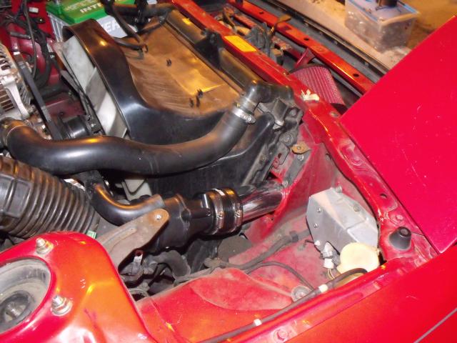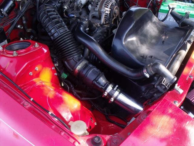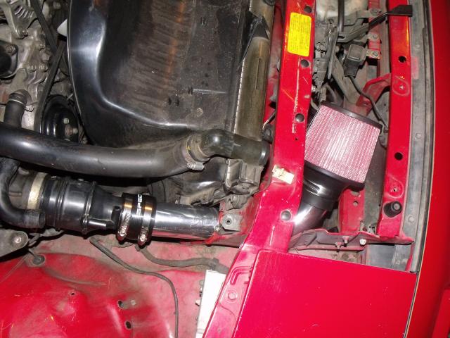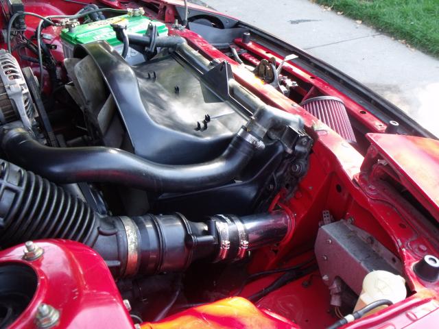Here is the cleaned up version and better fitment. The intake now sits more tucked in and is getting more "ram" air. The only actual difference between stock airbox using k&n drop in filter and my new setup is that it's not as restrictive at higher rpm. slightly less but less indeed. Also my friend mention that it is longer than before. this is false. the stock air box has a long route just to get to the filter. and it has about a 1" gap to suck in air between the radiator support and hood. I think this has been a very good mod. for being n/a of course.