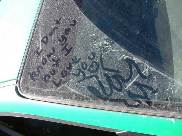 Then a few days later i find "I wish my boyfriend was this dirty" written on the back windshield: