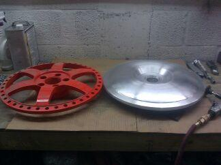 Alright, Brent sent me some pics of the wheels, how they are right now anyway. And kind of the process of cutting them too. I have to be honest, I really hope I'll like these more once I see them in person because right now I'm not 100% on these LOL! I need to see them on the car too. Also keep in mind they are still waiting for the colors. I'm trying to do a tinted brushed finish on the face (basically where you can see the brushed aluminum under a dark coating) and a black chrome on the lips that is lighter than the face, or maybe just regular chrome, although I'd go for polished too (he advised against just polished though, due to the upkeep). The wheel in the 4th pic should be one of the front wheels, he said they'll have a 2" lip and the rears will be 4".