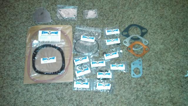 The kit is incomplete due to missing upper and lower intake gaskets, 1 exhaust manifold gasket, and front cover teflon o-ring. I think the kit ran about $200 after shipping when I got it. All parts are from Atkins Rotary. I'd take $80 for the kit.