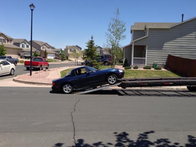 I picked it up from an older gentlemen in Denver. After signing the title, I called a Craigslist ad that was selling a hardtop. Picked it up on the way home. I was a little nervous driving from Denver to the Springs with only the front latches holding the top down but I didn't have much choice. Luckily, no incidents!