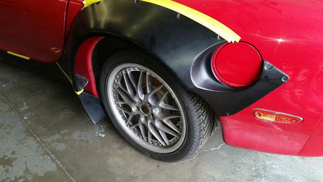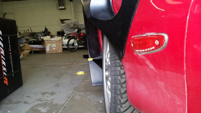 Since the paint is (like all VR FD's) faded and there are a couple of dents- driver door and fender from prior owner, and the front bumper is a bit worn, it needed a bit of paint and bodywork anyway. On the phone with my Greddy vendor one day he affirmed that they did indeed carry the Greddy Aero and would gladly pre-order a kit for me and let me know when it was in the country.